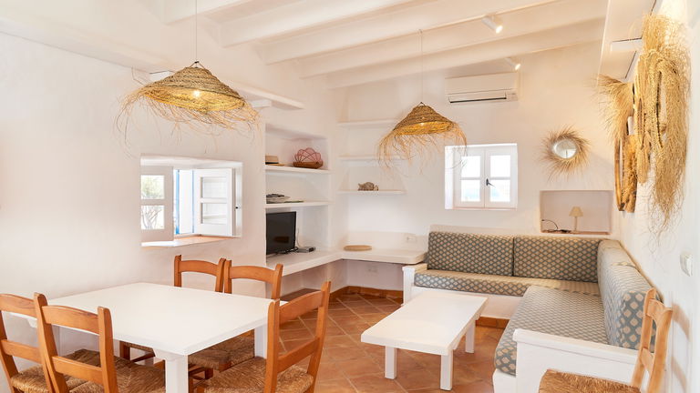 Decorada en blanco, la casa dispone de 2 habitaciones con 2 camas cada una, cuarto de baño completo. Salón con posibilidad de cama supletoria. Cocina. Aire acondicionado y Tv. Gran terraza. Parking privado con capacidad para un coche. Sábanas y toallas incluidas. Microondas. Lavadora. Cafetera. Preciosas vistas. Privilegiada situación. Restaurantes y tiendas en alrededores.