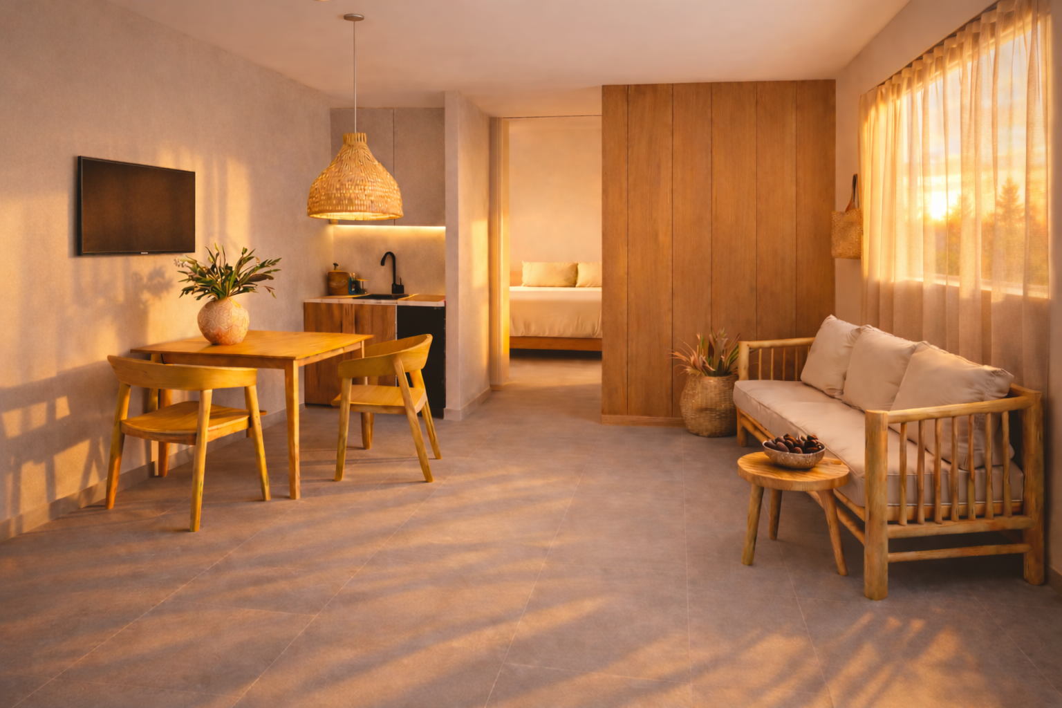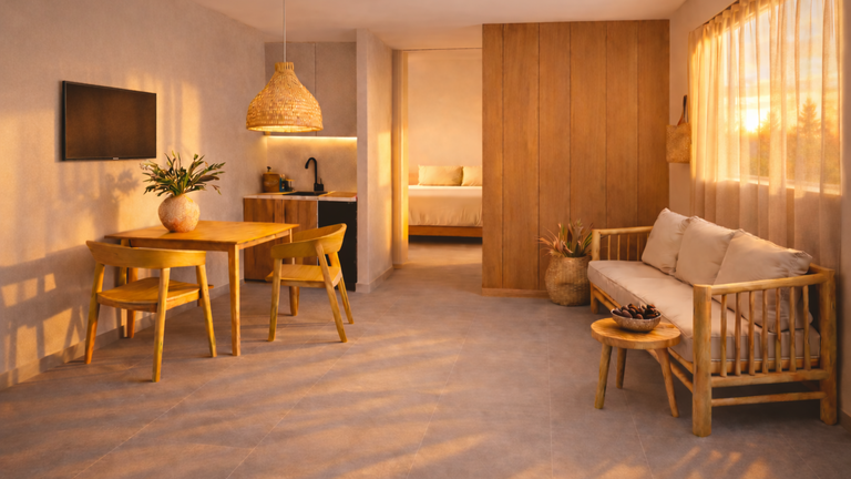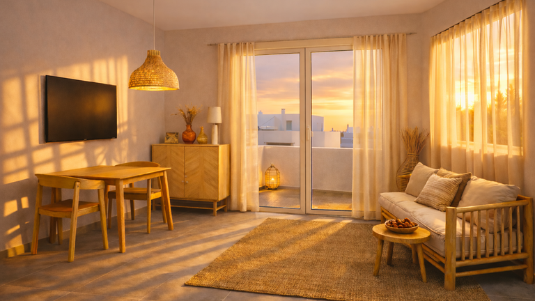 Questo apartamento ha 1 camera da letto con 2 letti singoli, aria condizionata, terrazzo o veranda. Angoloc ottura con frigorifero e forno a microonda. Bagno completo. Servizio di pulizia ogni 2 o 3 giorni, per soggiorni superiori a 4 giorni.